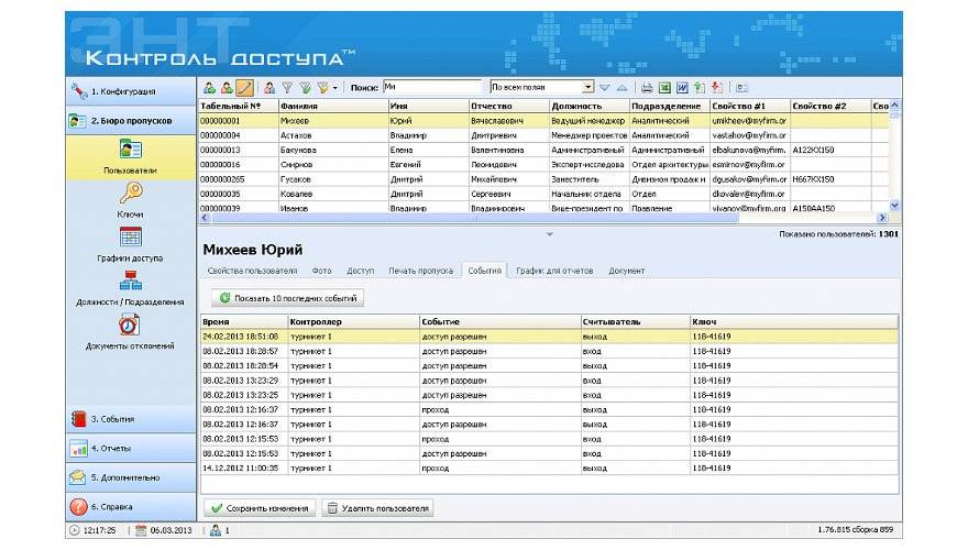 • Встроенный WEB-сервер для просмотра журнала событий сотрудниками