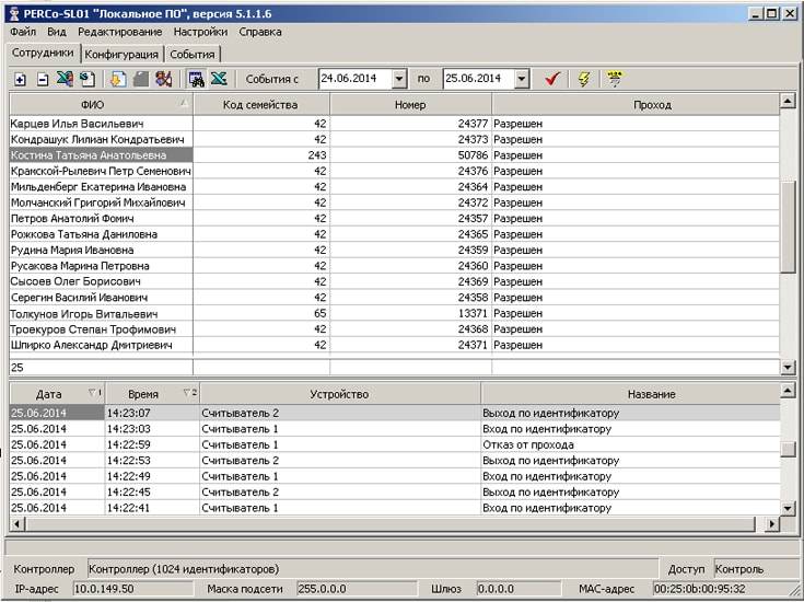 • формировать список сотрудников и контролировать их доступ через исполнительные устройства по принципу свой/чужой;