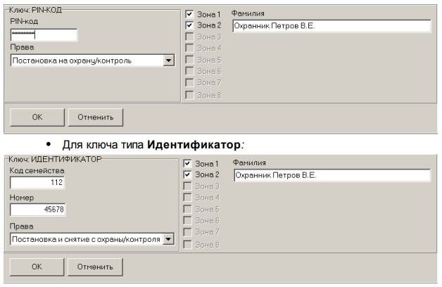 • сформировать список ключей (идентификаторов или PIN-кодов) для постановки и снятия с охраны зон охранной сигнализации и зон пожарной сигнализации.