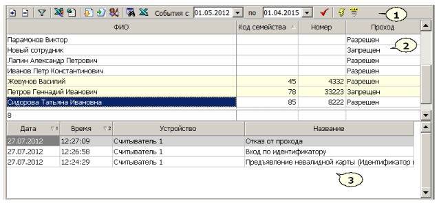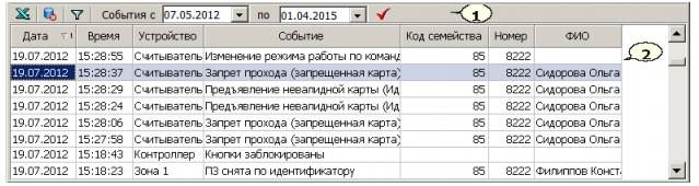 Кроме того модуль позволяет просматривать зарегистрированные в системе события пользователей и устройств.