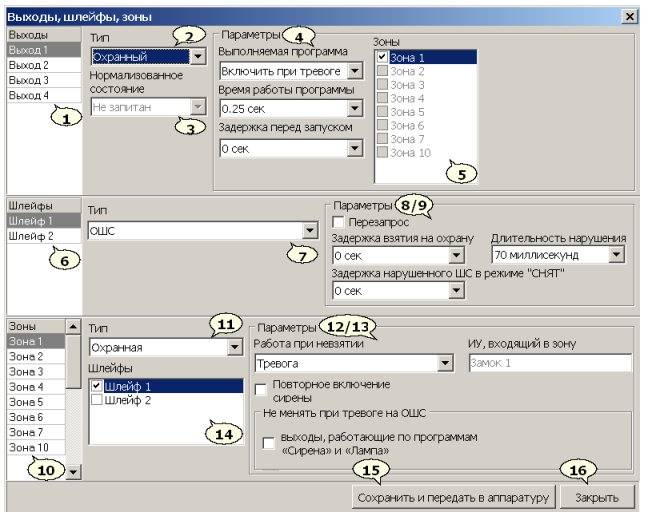 • формировать зону охранной сигнализации (ОЗС) и зону пожарной сигнализации (ПЗС);