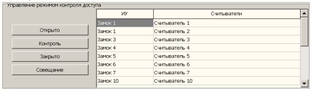 • оператору устанавливать режим контроля доступа через исполнительные устройства, подключенные к контроллерам первого и второго уровней;