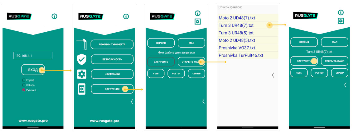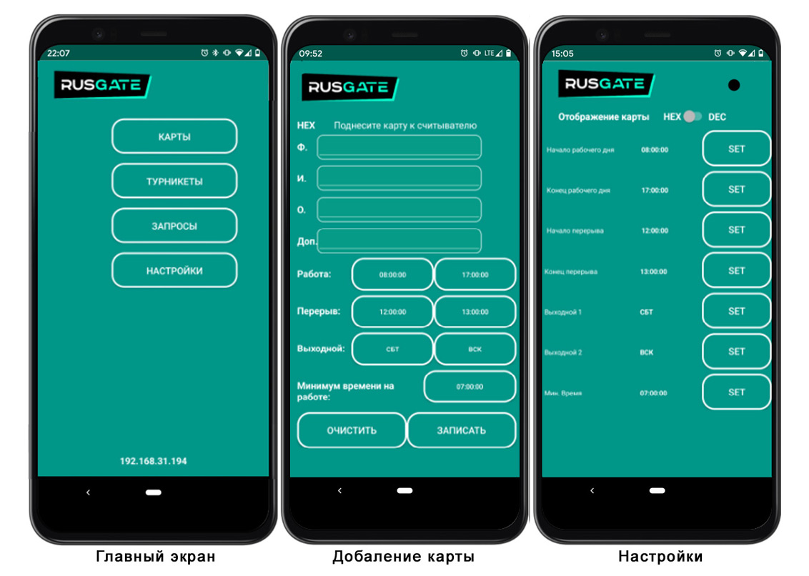 9. Используя Android устройство с ранее установленным приложением Мастеркард, подключаемся к каждому турникету по WiFi напрямую и прописываем в меню Роутер -> SSID и пароль Роутера, а в меню Сервер -> IP сервера (статический IP серверного Android устройства) и Порт 1035.