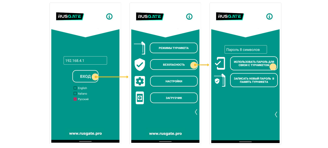 После нажатия на кнопки установить турникет издаст свето-звуковую индикацию и восстановит прежнюю