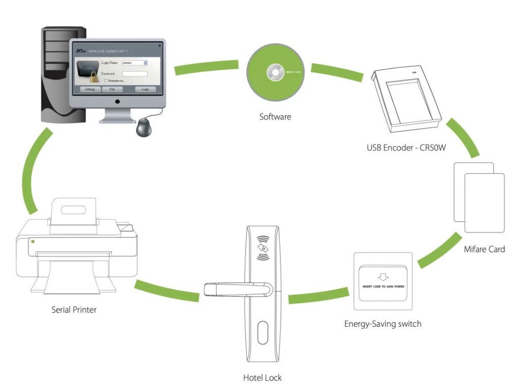ZKBiolock Hotel Lock System – это полностью бесплатное программное обеспечение, которое специально спроектировано для удовлетворения потребностей гостиниц малого и среднего размера, для обеспечения максимальной безопасности и низких эксплуатационных расходов. Оно обеспечивает удобный контроль и управление всей системой. Имеет функцию инсталляции «одним нажатием».