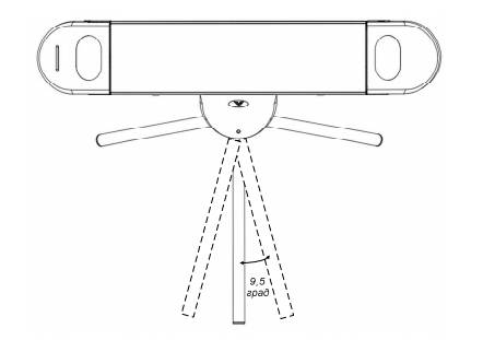 При установке турникета необходимо учесть возможный свободный ход планки, в режиме STOP,он составляет по 9,5 градуса в каждую сторону.