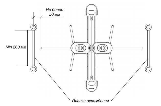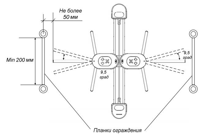 При установке турникета необходимо учесть возможный свободный ход планки, в режиме STOP,он составляет по 9,5 градуса в каждую сторону.