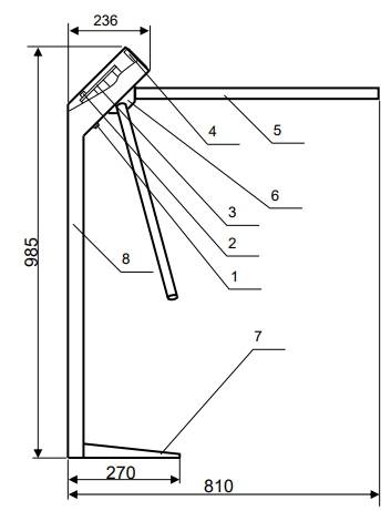 • Габаритные размеры стойки (длина х ширина х высота) мм: 250 х 985 х 840