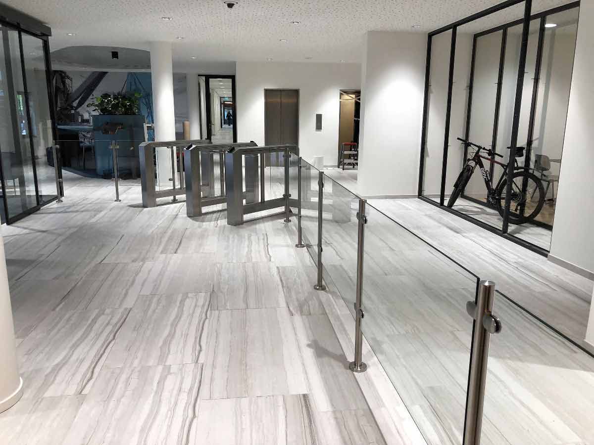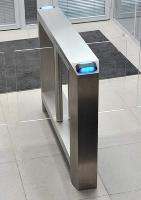 Турникет выполнен из нержавеющей стали и акрилового стекла, имеет презентабельный вид и современный дизайн. Он удобен для прохода с детскими и инвалидными колясками, а также объемным багажом. При необходимости турникет может быть оборудован дополнительными функциональными аксессуарами.