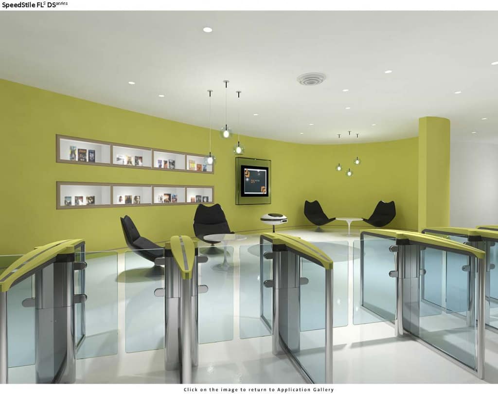 • SpeedStile FLS DS series – турникеты с распашными створками и дизайнерской верхней крышкой из технополимера с алюминиевым покрытием серого цвета. Возможно дополнительное верхнее цветное покрытие (опционально)