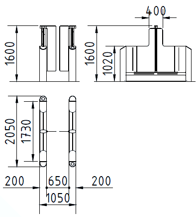 Тип корпуса турникета | Двухпроходной, Напольный |