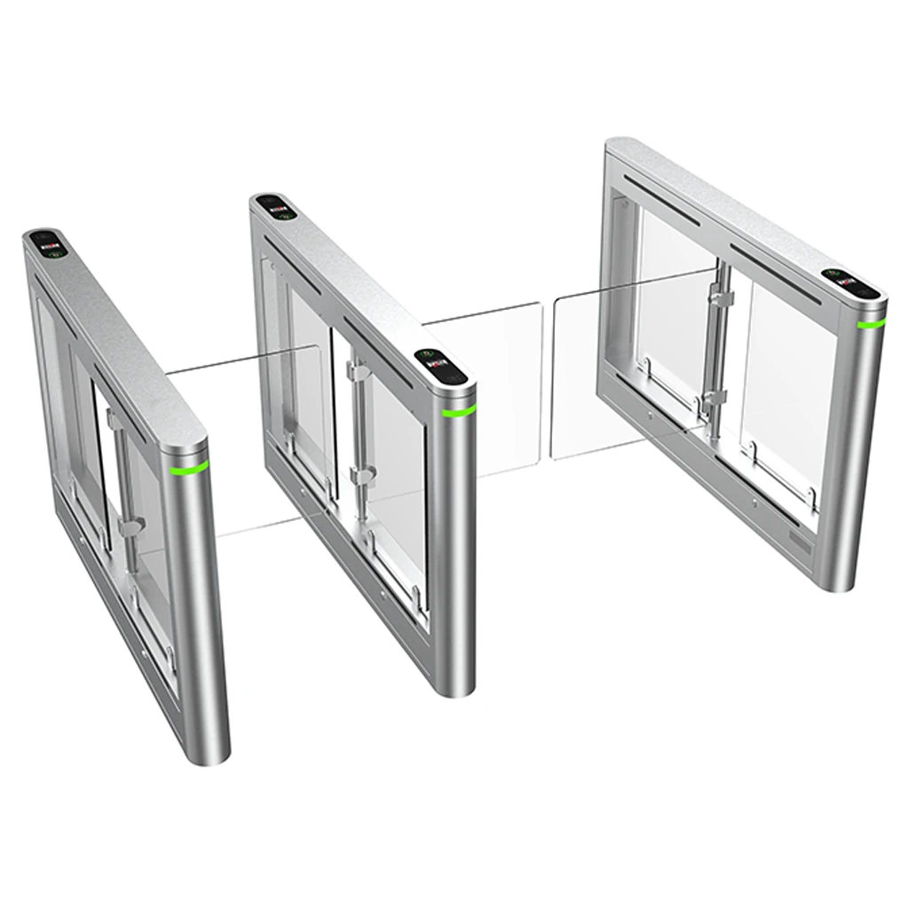 - Полуростовой распашной турникет со створками из акрила или нержавеющей стали.