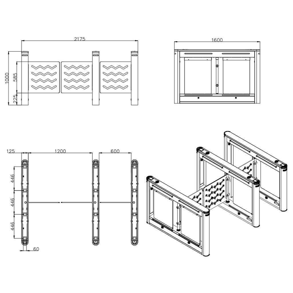 - AV.SG.6656-D-600: центральный модуль, ширина прохода 600мм, высота – 1000мм, длина - 1600мм.
