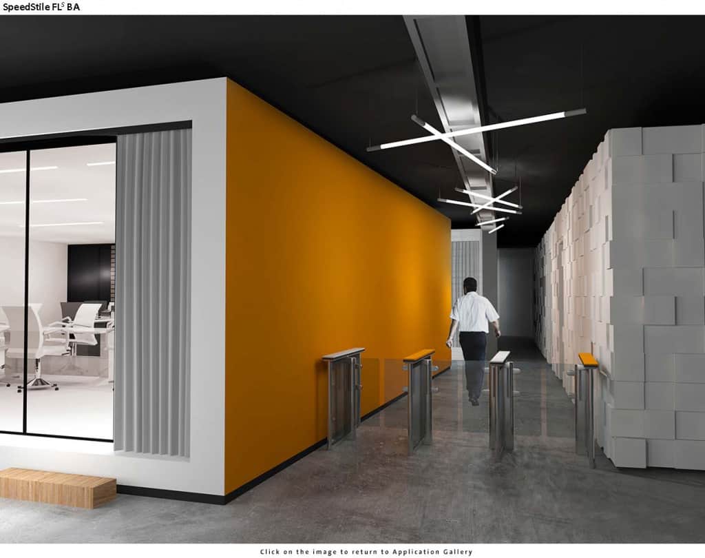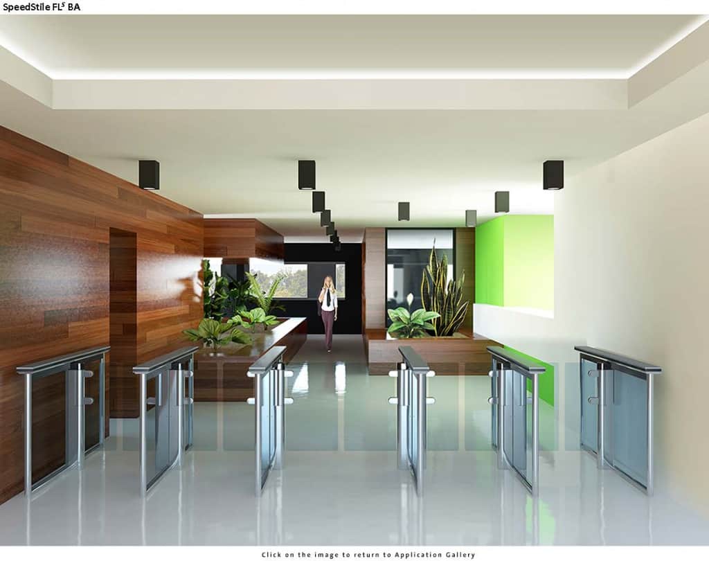 Турникеты с распашными створками SpeedStile FLS отличаются корпусом шириной 12 см с центральной секцией из 10 мм закаленного стекла.