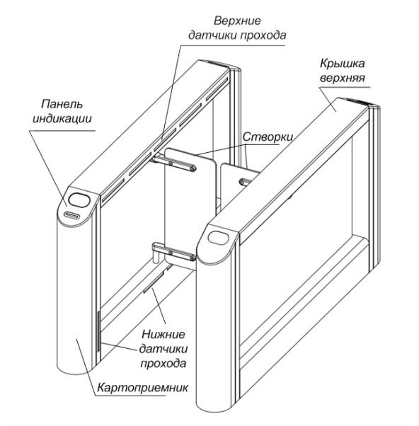 Створки турникета при этом открыты, но в случае несанкционированного прохода , они сразу же закроются.