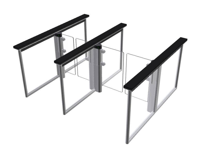 Турникеты с распашными створками SpeedStile FLS отличаются корпусом шириной 12 см с центральной секцией из 10 мм закаленного стекла.