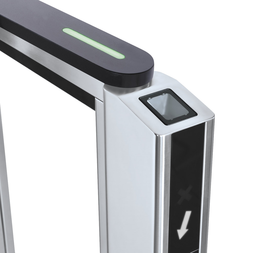 Увеличенная ширина прохода позволяет организовать проезд маломобильных групп населения, а также дополнительный выход в случае чрезвычайной ситуации. При проходе створки турникета распахиваются.
