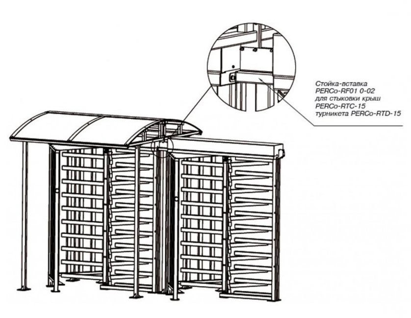 Стойка-вставка PERCo-RF01 0-02 для заполнения проема между турникетами PERCo-RTD-15, установленными под крышами PERCo-RTC-15 Исполнение: алюминиевые конструкции, покрытие «муар», светло-бежевый цвет с эффектом слюды.