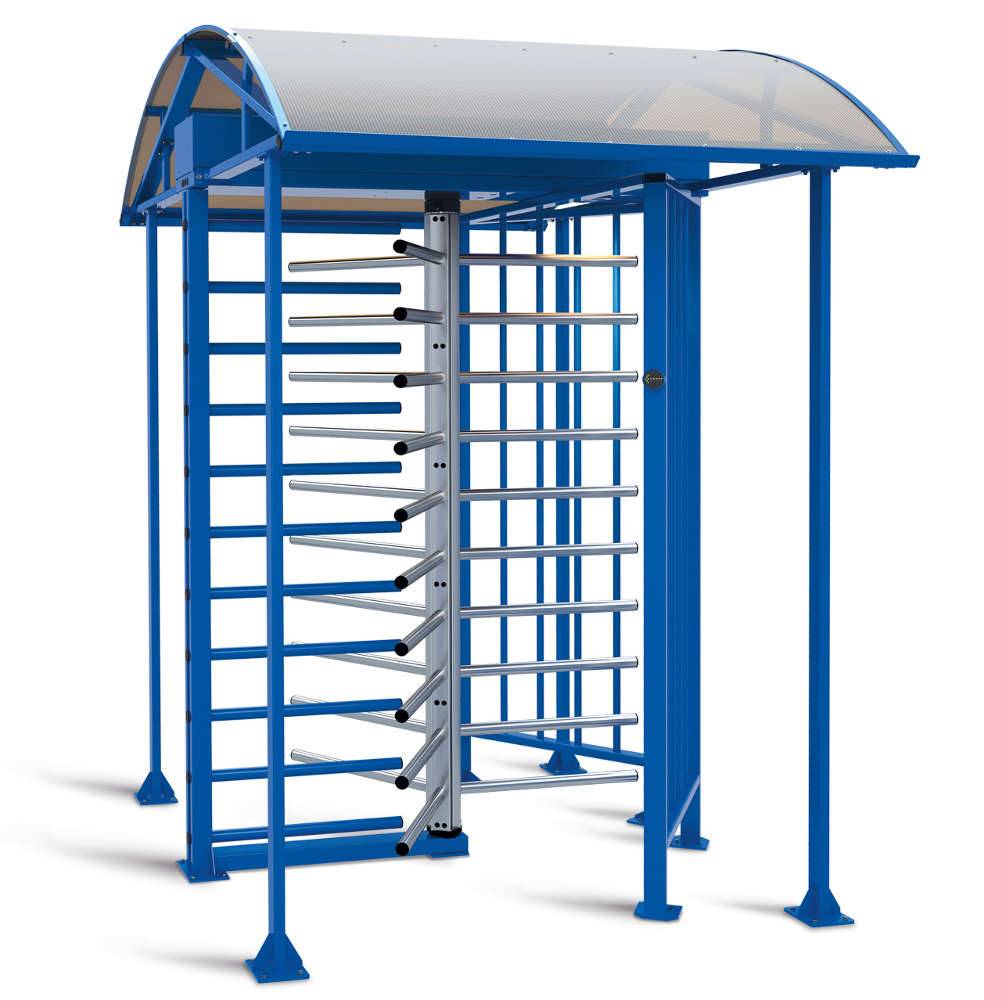 Дополнительная защита турникета от атмосферных осадков и попыток проникновения через его верх, достигается опциональной установкой крыши, соединяемой с турникетом в единую конструкцию.