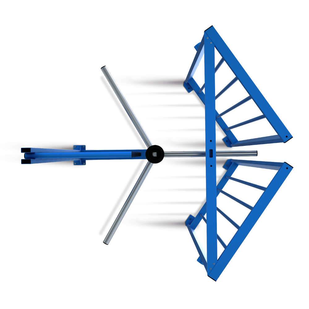 Стойка с преграждающими планками (5) представляет собой вертикальную опорную стойку с преграждающими планками и горизонтальным основанием, в котором монтируется нижний узел вращения ротора (3). Стойка с преграждающими планками крепится к установочной поверхности через четыре монтажных отверстия во фланце и одно монтажное отверстие внутри узла вращения.