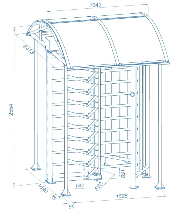 • Габаритные размеры турникета (в×ш×г): 2303×1641×1595 мм