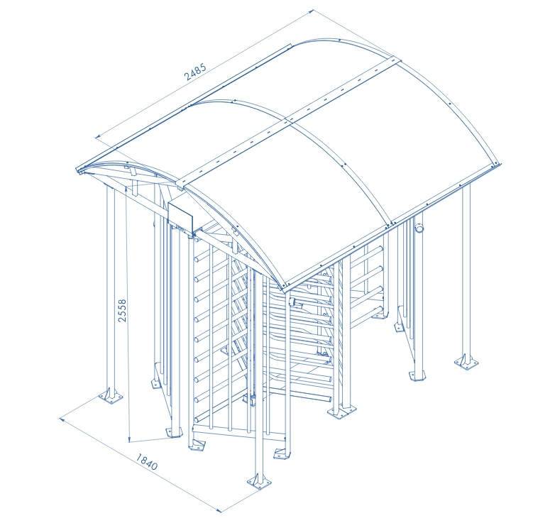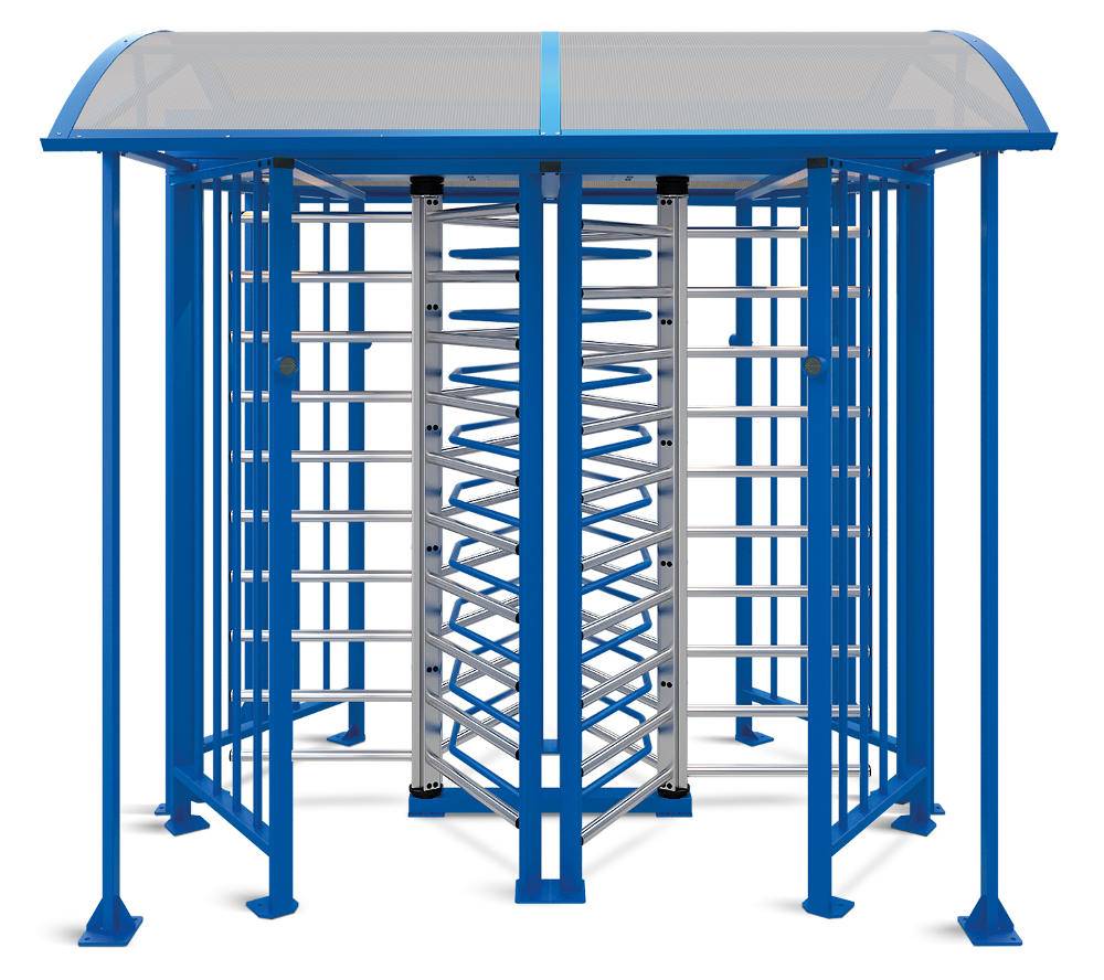 Дополнительная защита турникета от атмосферных осадков и попыток проникновения через его верх достигается опциональной установкой крыши, соединяемой с турникетом в единую конструкцию (поставляется отдельно).