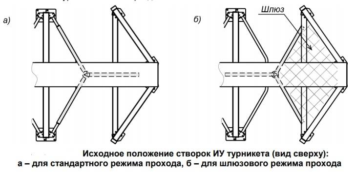 • Каждое из двух исполнительных устройств турникета является нормально закрытым преграждающим устройством. При отключении источника питания его ротор блокируется в исходном положении.