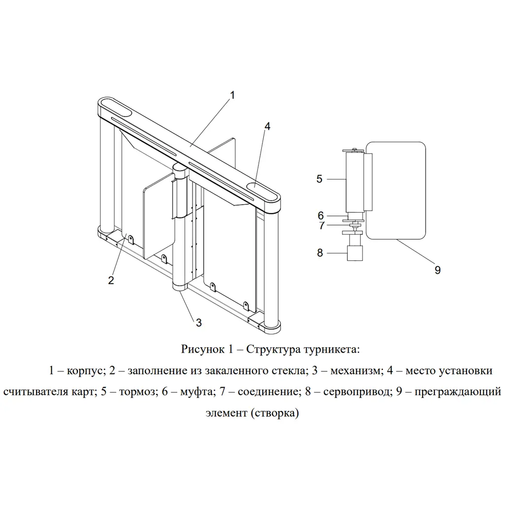 - Створки турникета автоматически разблокируются при отключении питания, что соответствует требованиям пожарной безопасности;
