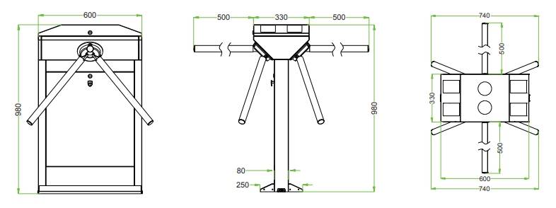 Тип корпуса турникета | Двухпроходной, Напольный |