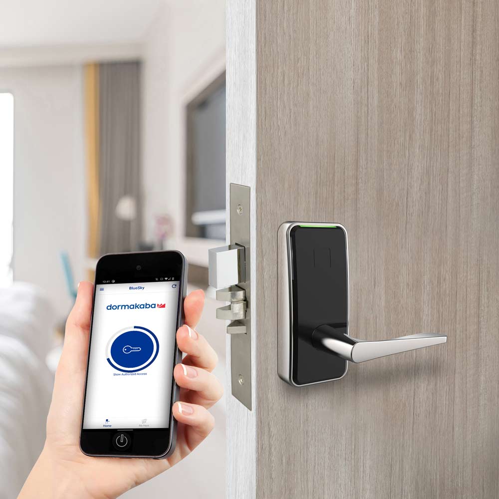 Замок Saffire LX оборудован технологией Bluetooth Low Energy (BLE). Благодаря системам доступа с помощью мобильных ключей, предлагаемым dormakaba, гости могут легко использовать свои мобильные устройства для доступа к любой двери с замком Saffire LX, в т.ч. для доступа в номера и зоны общего доступа.
