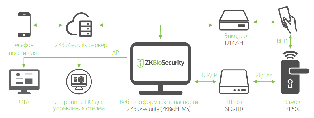 Это решение с одной картой для повышения удобства использования системы управления отелями ZKTeco. Имеется открытый API для интеграции.